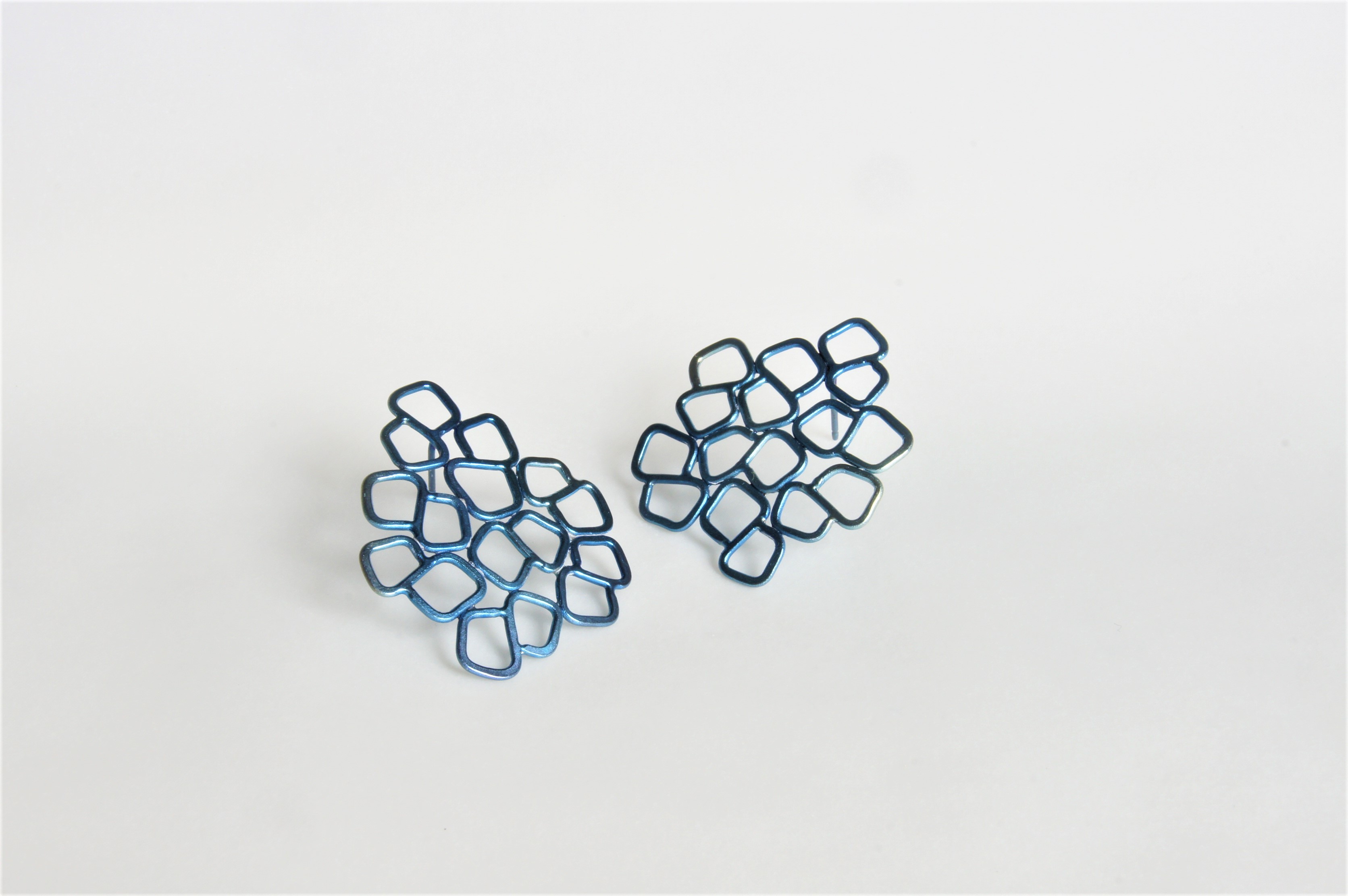 Titanium oorbellen blauw geanodiseerd. Mogelijk in verschillende kleuren