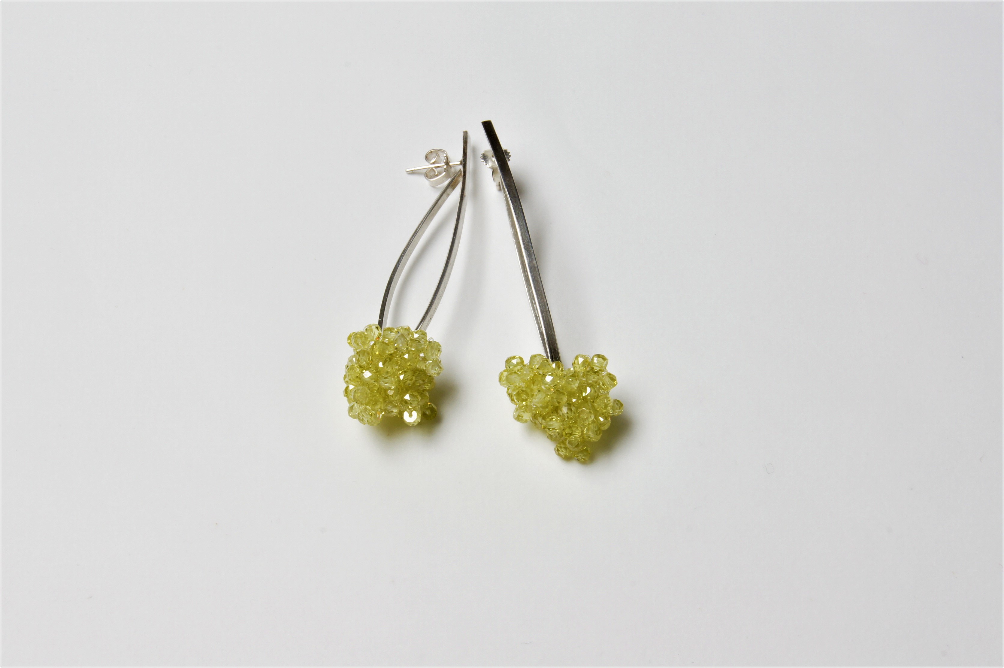 zilver, fijne zirkonia kraaltjes, lime kleurig